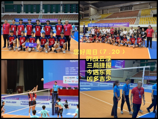 云浮市地处广东省中西部,分别与肇庆、佛山、广西省等接壤,素有中国石材之乡和中国石雕之乡之美称。对于这支神秘之师,双方互不了解,就是一场遭遇战。根据比赛规则,第一局和第二局必须是两套人马,第三局之后,则完全放开,12名队员可以尽遣主力登场。于是,首局双方主力亮相。甫一交手,我方一传失误送分,随即调整心态,然后,从四号位发起进攻得手。反观对方,一传也不到位,难以组织有效进攻。在来回球上,对方连连失误。尤其在后半段,胡炎鑫的大力发球,一路奏效,发球终结了首局。比分25:6。第二局双方的替补登场。开局双方有来有往,互有失误,至中后段我方开始领先,终以25:11结束。第三局,双方主力再次上场。开局,我方失误,比分落后,中段时,比分追回。18:11时,我方由苏杰俊、张景程换下廖锦涛、王嘉乐。队员们互相鼓励,每得一分,高喊:惠州加油!终局25:11!这样,我队以三:零轻取对手。