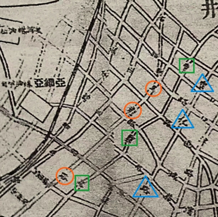 查阅1919年左右的广告资料,东鲁的青岛工场已在“地中通”。由此分析,北通的道路若以现在的辽宁路西段起始,当它继续右拐东行至华阳路路口时,部分现华阳路的南端可能被视作北通的范围,直到地中通的名称出现,然后又是记载较为详实的弥生町。