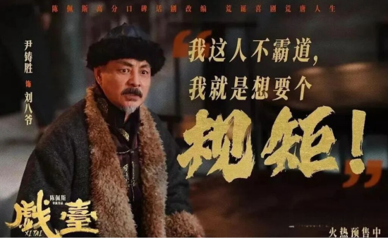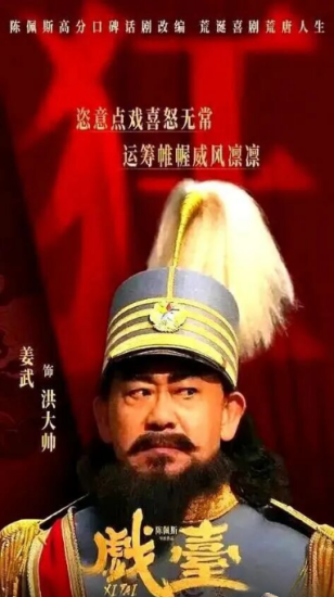 《戏台》最大的矛盾冲突是洪大帅改戏,漫画式的洪大帅入了“戏”,他把自己想象成了霸王,他不能过不了河,他的虞姬不能死,非得要演员修改《霸王别姬》的结尾,形成紧张的戏剧张力让一部戏剧电影具有了悲剧色彩。