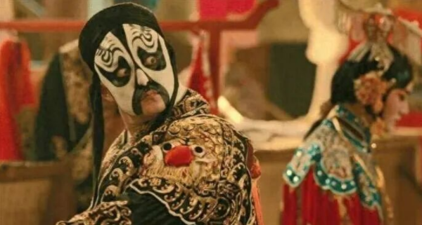 在戏曲行话里,“挎刀”专指次要演员为主角配戏的从属关系,就像挎着刀护卫主角。在《戏台》中,凤小桐(余少群饰)自称给金啸天(尹正饰)“挎刀”,表面是自谦,实则点明其在戏班的实际地位。作为金啸天的师弟,他虽技艺精湛(饰演虞姬),却长期居于师兄的阴影下,承担配角职能。就像初出道时张君秋与马连良的关系,也类似于梅兰芳与为他配戏的“二路旦角”的搭配模式,在舞台上,配角需精准衬托主角,艺术发挥空间受限。传统京剧中生行(如霸王)长期占据中心,旦角(如虞姬)更多是陪衬。另外,更重要的是,凤小桐的“挎刀”身份映射民国戏班的等级制度:班主侯喜亭(陈佩斯饰)为保障戏班生计,要求凤小桐配合冒牌“霸王”大嗓儿(黄渤饰)演出,即便后者荒腔走板,凤小桐仍被迫妥协,忍着委屈登台。一句“都指着你活命啊”道出其艺术理想向生存压力低头的无奈。