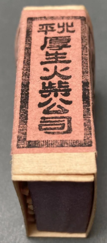 一盒“虎猴”的实物火柴,侧边印有“北平厚生火柴公司”的厂铭。北平的名称仍然保留在火柴盒上,表明它不会比1949年10月的时间节点晚太久。换句话说,这盒火柴至少是1949年的生产。细细一想,距今足有七十四年矣。