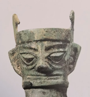 图1的冠子,是象征伏羲女娲合体神像的特有的冠子。这种冠子在三星堆2号坑出土的“神辅”头上(图3)、同坑出土的“青铜小型神树(K2③:272)”其树上的人首鸟身太阳神的头上,也戴着这样相同的冠子。