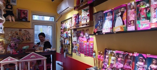 我环顾四周,说:“都是芭比娃娃啊。”她说:“是的,都叫芭比。”我又说:“好像日本也有不少布娃娃,”她指了一个角落说:“我这里只有四个,其他的都是美国的。”她又指着几个有些陈旧的说:“这些都是好多年的了,”我看了是20世纪七八十年代的,价格也就是八九块钱,便说:“这都是古董级的了,不贵。”她说:“我有个表弟在美国,他给我寄一些,还有我自己收藏的。”又指着货架最上面一个说:“那个是我自己做的。”像说自己的孩子,眼神中流露出满满的自豪和宠爱,我由衷地称赞了一声。