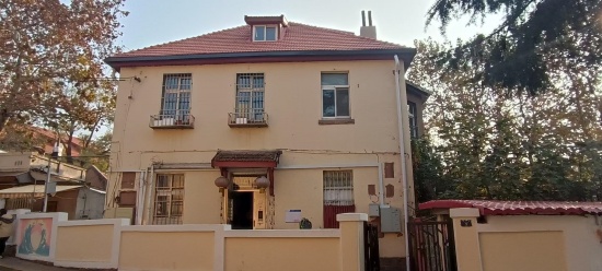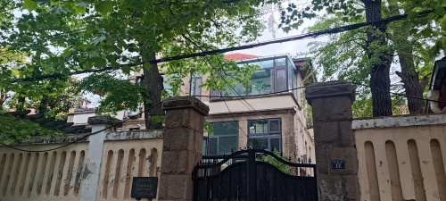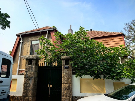 黄县路19号是一栋三层楼房,1931年6月29日竣工。南侧外凸一梯形塔楼,德式现代建筑风格。屋顶开老虎窗,带有烟筒。建筑入口位于西南,有一段楼梯直接进入二楼。这个院曾经住过十户人家,也曾有其他地方随处可见的违章房,只是随着住户搬走,违章房逐渐减少,去年政府老旧小区改造,彻底清除了。现在院里只有一户人家,所以整个院落如同主人一样低调、静谧,感觉不到丝毫喧嚣、嘈杂。