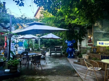 如今在14号经营的韦嘉咖啡青年旅社开业已经11年了,在这样一个偏僻的小胡同中坚持这么长时间,一定有它独到的经营之道。这里的装修很别致,充满文艺范儿和复古气息,每一个角落都极具特色,人在其中,仿佛置身于一个艺术馆。难怪有诸多影视剧在此取景,像《天才基本法》《见面吧就现在》《当我飞奔向你》《你比星光美丽》等,鹿晗、雷佳音、周翊然等明星便成为他们的免费广告。