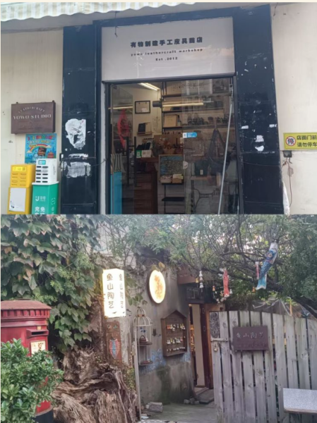 旁边的龙口路25号甲、乙分别是一间陶艺馆和一间皮具手工制作坊,现在仍然都在经营。