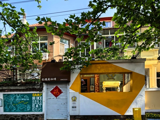 现在的21号也是网红打卡地,因为有个长颈鹿咖啡店。这个2013年开业的店是龙江路、黄县路一带元老级咖啡店,开始开在与大学路相交的小胡同内,因把店门口的一根长电线杆涂上橙白相间的色彩,恰似一只长颈鹿守在门旁,这个新颖的创意诞生了一个网红店。