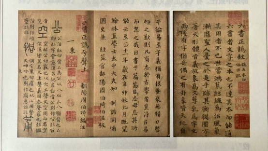 无独有偶,在青岛市图书馆编著的《青岛市图书馆珍藏古籍叙录》也有一本《六书正讹》,和青博那套不同的是,该书是手抄本,是明代傅鉴影抄周伯琦写刻本的。和青博那套相同的是,该书也是郑爰居收藏过的。可见郑爰居对此套书的喜爱程度。该书第一批就入选了山东省珍贵古籍名录。