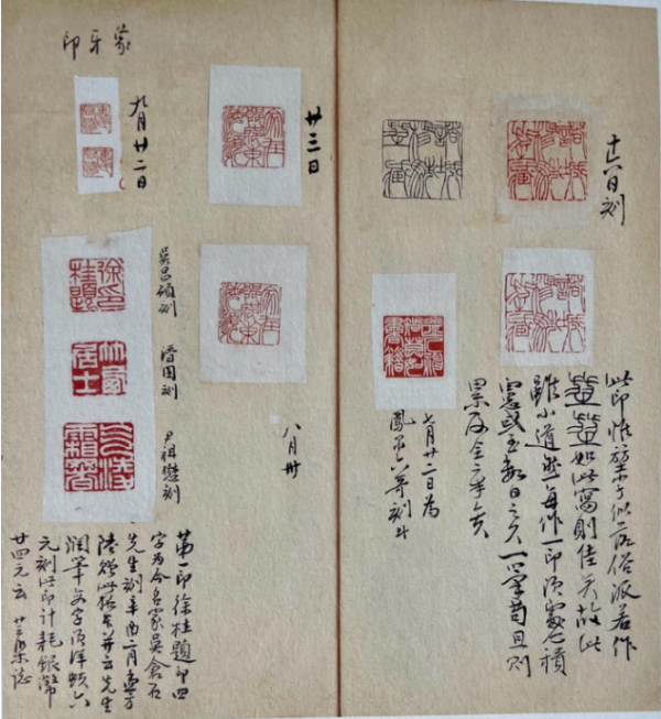 上图展示印蜕大部选自郑爰居留存印谱。郑爰居经常在印谱中写下评语或体会,其中有一段这样写的:“此印刻成自以为可,一检汉印则见其字画结体痴而且嫩矣,予所藏汉印谱内有曰周庆者可取法也。”