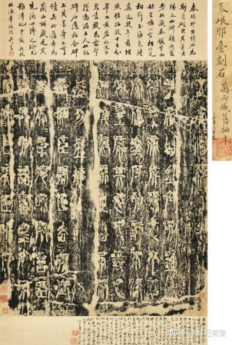 寒松堂收藏金石拓片的一个最大特点是秦汉名碑大碣基本收齐,从石鼓文、峄山刻石以及西汉的几个著名碑刻如群臣上寿刻石等,一直到三国的吴天发神谶碑和吴禅国山碑。还有一个特点是这些拓本大部分流传有绪,从藏品钤印可以看出,在入藏寒松堂之前,不少经过其他名人之手。