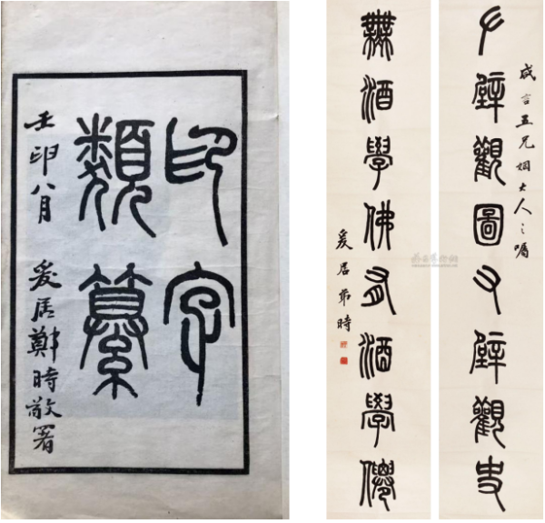 郑爰居的篆书师承邓石如,间架开张,风格独特。