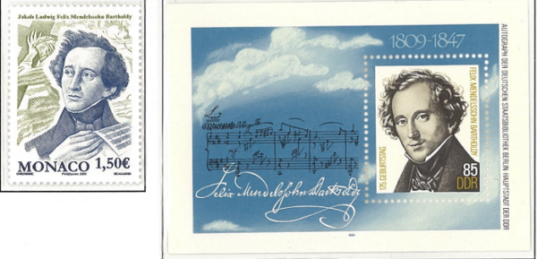 巴托尔迪,1809-1847音乐节,图门德尔松侧面肖像和曲谱及乐器