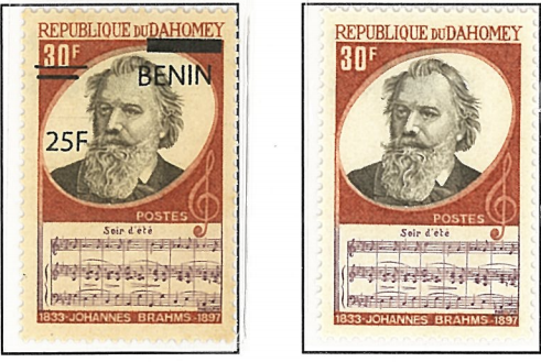 达荷美改值票,右为正票