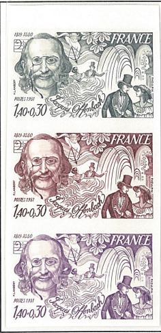 法国,1981,竖三连试色印样