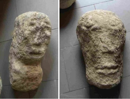 这被大禹废弃的太阳神神庙,至今仍存的大荒式的人像雕刻,就如李广春先生传给我的石雕图像风格一样(图1)。“大荒式”,特指处于雕刻开始阶段的“大关系”式毛坯样的粗雕刻。