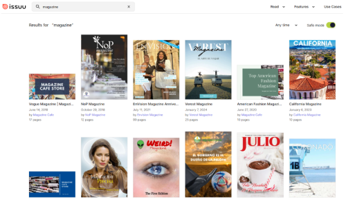 Issuu.com 是一个时尚的网站,让观众可以享受来自全球优秀出版商的最大的免费阅读出版物。杂志海量,艺术、美食、宠物、运动、美容、各行各业设计的杂志。你可能会发现很多有趣的事情。此外,issuu.com还根据您的阅读需求,为您提供一些建议。