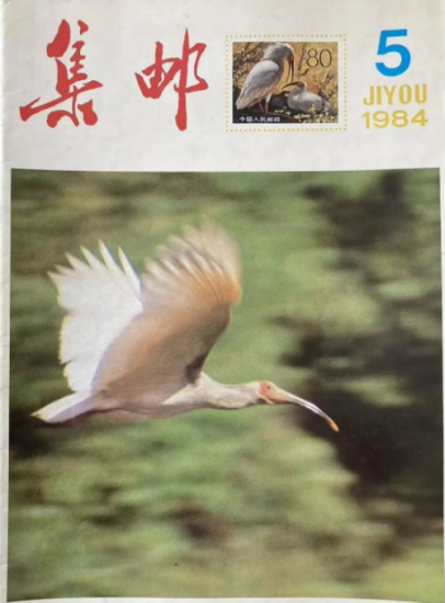 1984年第5期《集邮》杂志,依照惯例是每月5日出版。这期的封面是一只飞翔的朱鹮,为5月15日计划发行的T.94《朱鹮》邮票做宣传。