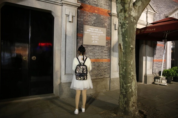 5.深夜在上海新天地一大会址前驻足的女孩