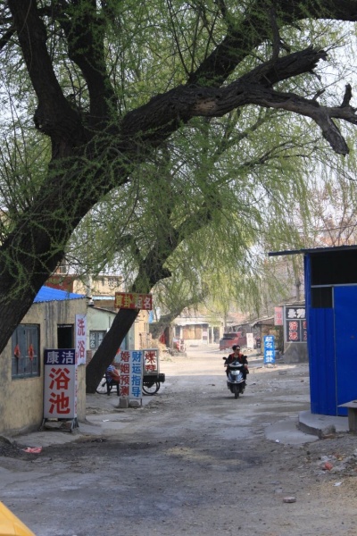 交通马路是一条东北西南走向的斜路,长不足三百米,宽处四米余,多弯,内连多条比它更窄的巷子,在高密城横平竖直的道路中很特别。它被叫作神仙巷,获此名号大概与该巷从镇府街开始向里百米的巷子两侧密布兴盛的从事算卦起名算日子婚姻预测财运指导勘探阴阳风水等生意的店面有关。巷子的另一头是小吃店和早中晚间活跃的菜市场,还摆了几个全天宰杀鸡鸭的摊子,烟火气足但比较凌乱。香港武打片流行的20世纪80年代早期,神仙巷三五步即一家录像厅,拳脚棍棒斧钺钩叉的搏击声连绵不断到城北端的火车站,吸引过大批位于站前高密一中老校区的学生。对众多那年代的学生来说,除了模糊不清的录像片,张牙舞爪的武林高手,神仙巷还用一条线连接高密老电影院正在放映的划时代的宽银幕电影《少林寺》。俱往矣。所幸拍照那天巷口的三棵老柳树还在,仿佛从神仙巷诞生之日起它们便以古老的倾斜的姿势存在着,俯视城市,荫庇苍生,这印记将以年年春天萌发绿色枝条的形式复活于一代代高密人的回忆中。