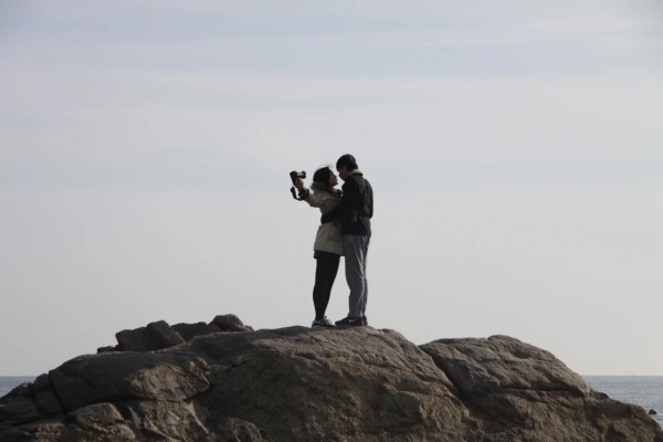6.大海另外的作用是见证一个女孩自拍的爱情