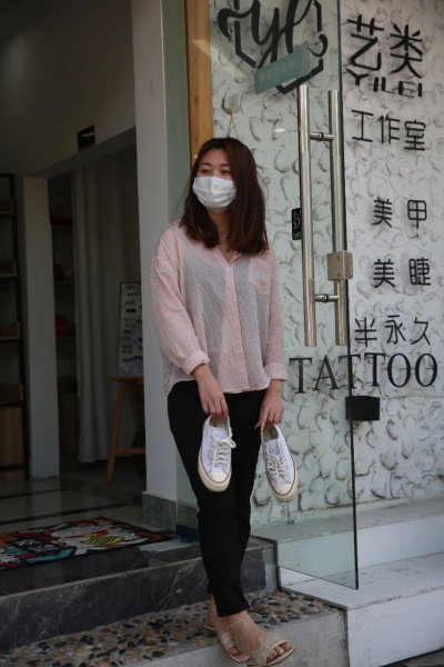 1.戴口罩拎鞋子的女孩