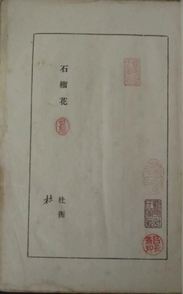 鲁迅说过,幼年的衔手指、出屁股的照片,长大后知羞,藏起来不示人,但那是真实的、天真的历史。杜衡,这位现代文学史上的有争议,有影响的人物,如果要研究他,也不能绕过早年的这本著作,它毕竟存在过。尽管作者本人不大承认它,可也不是毫无踪迹可寻,其中的《还魂草》,发表于1928年第十九卷第六号《小说月报》。我家的这本《石榴花》还是毛边本,书根处较平,天头和左翻处参差,即使作为中国出版史的毛边本实物,作为短命的第一线书店的实绩,也都有收藏的意义。
