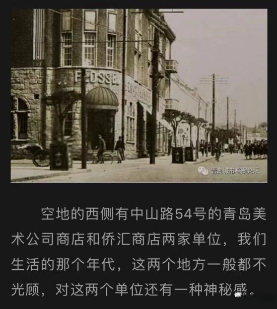 美术公司的上级主管部门,归属隔着两条马路的广西路42号的青岛市商业局。八十年代伊始,美术公司又划归青岛市外轮供应公司管理。为此,六十年代美术用品商店的场地成了新疆路12号友谊商店之外的一处门市部。繁华的中山路上,增添一家大多数人只能光顾却不能直接购买实物商品的“侨汇商店”。不过,有段时间在54号门前的空地,搭建了临时售卖出口布料的摊位,引来无数追求美好生活的大众消费者。