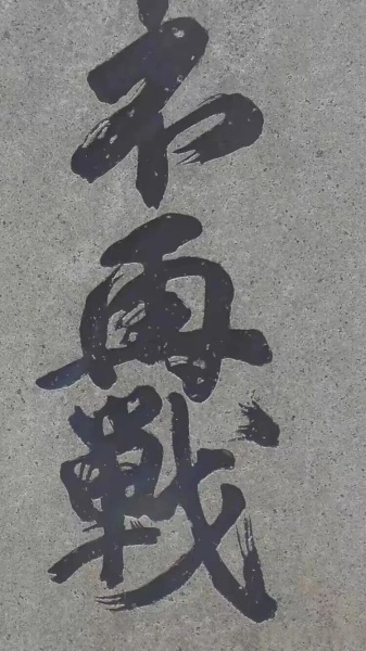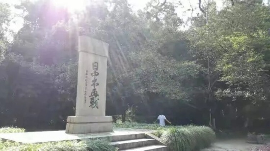 行至一处,目光被林间景象攫住:几束强烈的日光,如利剑般穿透浓密的树冠,不偏不倚,正好笼住一方石碑。那场景,庄重而神秘,仿佛舞台中央唯一的追光,在宣示着某种不容忽视的存在。走近看,碑上赫然是五个大字——“日中不再战”,落款是日本岐阜市长。碑上没有刻下年代,这无意的留白,反让我觉得恰好:和平的祈愿,本就该超越具体的时间,指向永恒。站在光柱与碑文之下,四周的蝉噪仿佛瞬间退远。
