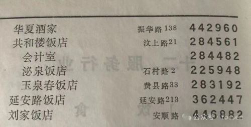 从1975年的电话号簿,可以找到工农兵饭店,但并没有地址的标注。从三部登记的电话号码24482以及费县路门市部23192、石村路门市部25948的线索来看,工农兵饭店在费县路周边是确定的。