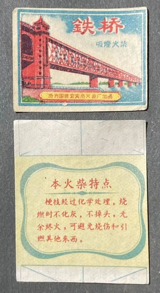 以小卷标形式出现的吸烟火柴,见于1959年地方国营宜宾市火柴厂出品的“铁桥”商标。同样的“铁桥”,宜宾厂在此之前是作为安全火柴的常规尺寸之用。此外,泊头、遵义、福星等厂,也都出品过类似的吸烟火柴。
