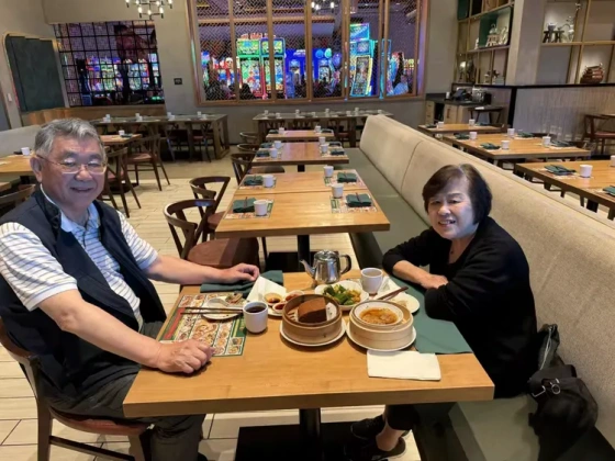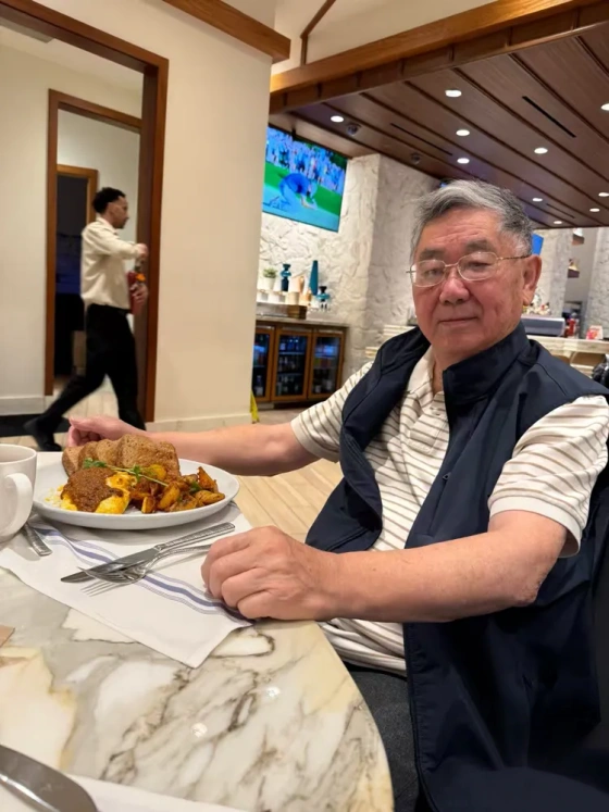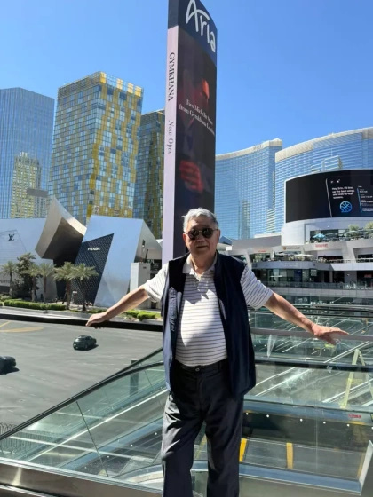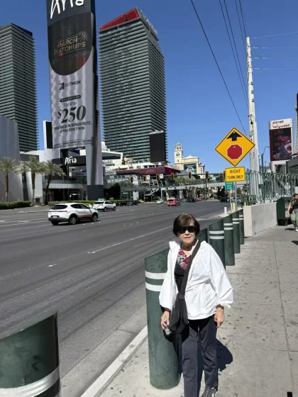 五十五载春秋流转,今日我们执手自驾,驶向拉斯维加斯——不是逃离,而是奔赴;不是漂泊,而是归心。车轮启程时回望家门,风拂银发,笑意如初,翡翠婚的年轮,正一圈圈沉静延展。