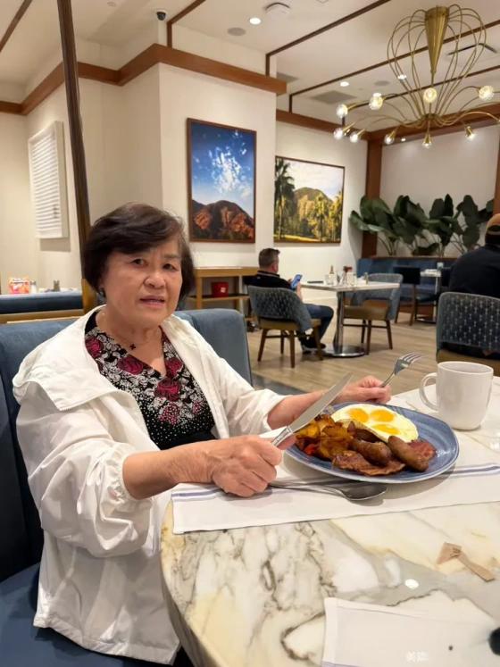 晨光初染,我们在法式咖啡厅用早餐。咖啡氤氲,可颂酥香,刀叉轻碰如旧日窗下絮语。时光未老,只是换了一种方式温柔流淌——翡翠婚的清晨,自有其从容韵律。