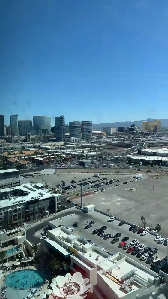 我们栖居PALM酒店,凭窗俯瞰整座城:霓虹如河,车流似脉,沙漠在远方静卧如砚。五十五年光阴在此俯仰之间,豁然铺展——昔日土屋低檐,今朝云外高楼。