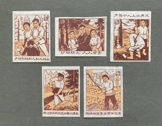 防火宣传,是特定年代重要的公共安全民生事项。护林防火,亦同等重要。以色彩搭配鲜明、画面栩栩如生的长汀火柴厂的标贴为例,除了“人人有责”的核心图案外,“严防阶级敌人纵火烧山”的提高警惕,“严禁个人上山用火”的温馨提示,都是时时刻刻、常抓不懈的工作内容和岗位责任。