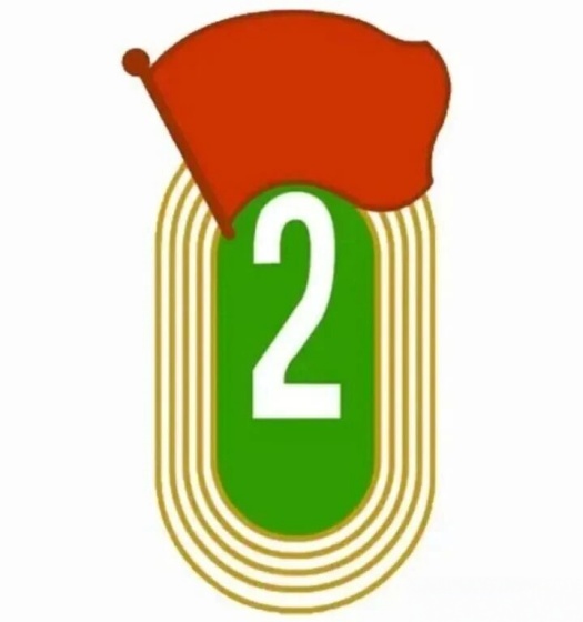 二运会的会徽,由金色的跑道,醒目的数字“2”和一面飘扬的红旗组成。跑道上方的红旗,象征高举社会主义的伟大旗帜,是一个特定时代的独有标记。